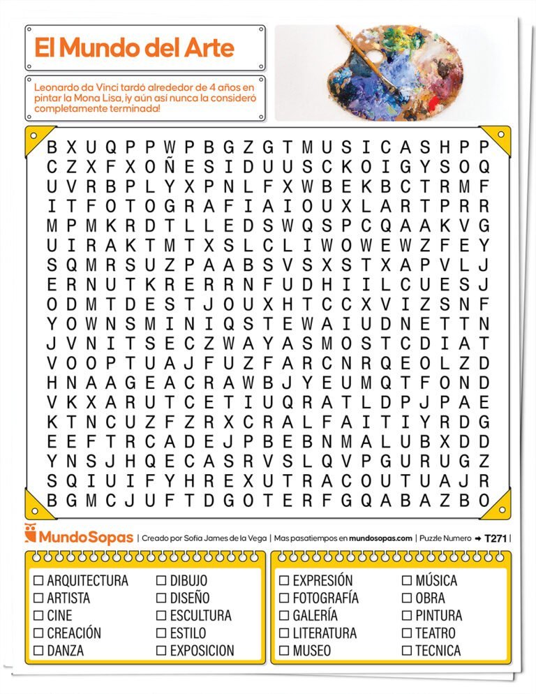 Encontrarás 20 palabras como pintura, escultura, museo y más.