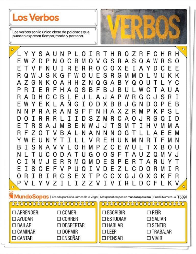 Descarga e imprime este PDF y prepárate para una búsqueda llena de acción lingüística.