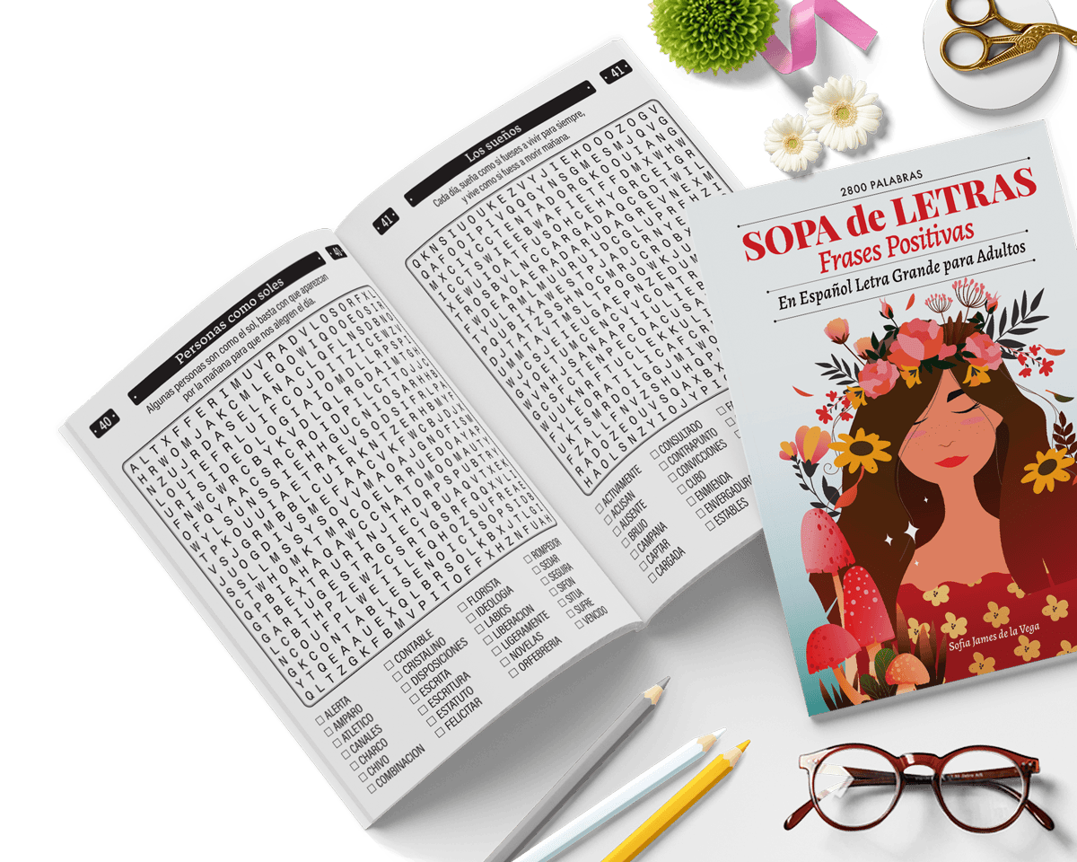 Este libro de sopas de letras está diseñado para que disfrutes de momentos de calma mientras alimentas tu ánimo con frases que inspiran.